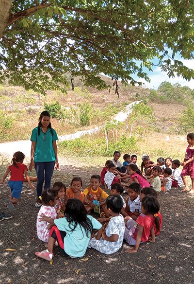 Esther gathering the village childrento teach them.